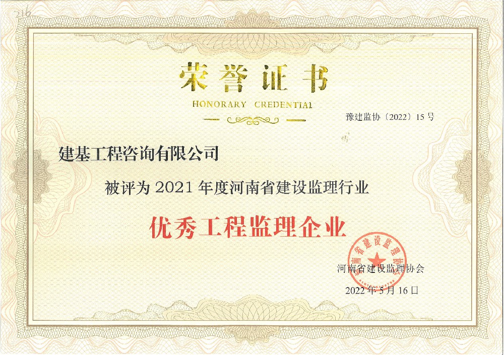 • 被河南建設監理行業評為2021年優秀工程監理企業